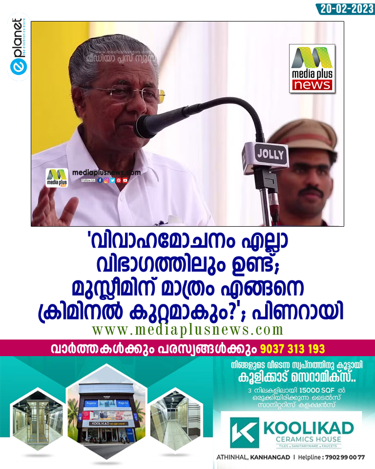 കാസര്കോട്: മുത്തലാഖ് ക്രിമിനല് കുറ്റമാക്കിയതിനെതിരെ മുഖ്യമന്ത്രി പിണറായി വിജയന്. വിവാഹമോചനം നടത്തിയില് ഒരു വിഭാഗം മാത്രം ജയിലില് പോകണമെന്ന നിയമം തെറ്റാണെന്നും പിണറായി വിജയന് പറഞ്ഞു. സിപിഎം സംസ്ഥാന സെക്രട്ടറി എംവി ഗോവിന്ദന് നയിക്കുന്ന ജനകീയ പ്രതിരോധ ജാഥയുടെ ഉദ്ഘാടനം നിര്വഹിക്കുകയായിരുന്നു മുഖ്യമന്ത്രി.