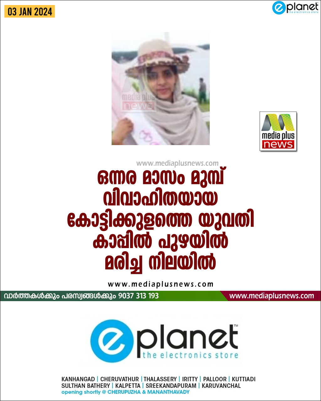 ഒന്നര മാസം മുമ്പ് വിവാഹിതയായ യുവതിയെ കാപ്പിൽ പുഴയിൽ മരിച്ച നിലയിൽ കണ്ടെത്തി. കോട്ടിക്കുളം കോടി റോഡ് സ്വദേശി ഓട്ടോ ഡ്രൈവർ മുഹമ്മദിന്റെയും സുബൈദയുടെയും മകൾ തഫ്സീന (27) ആണ് മരിച്ചത്.