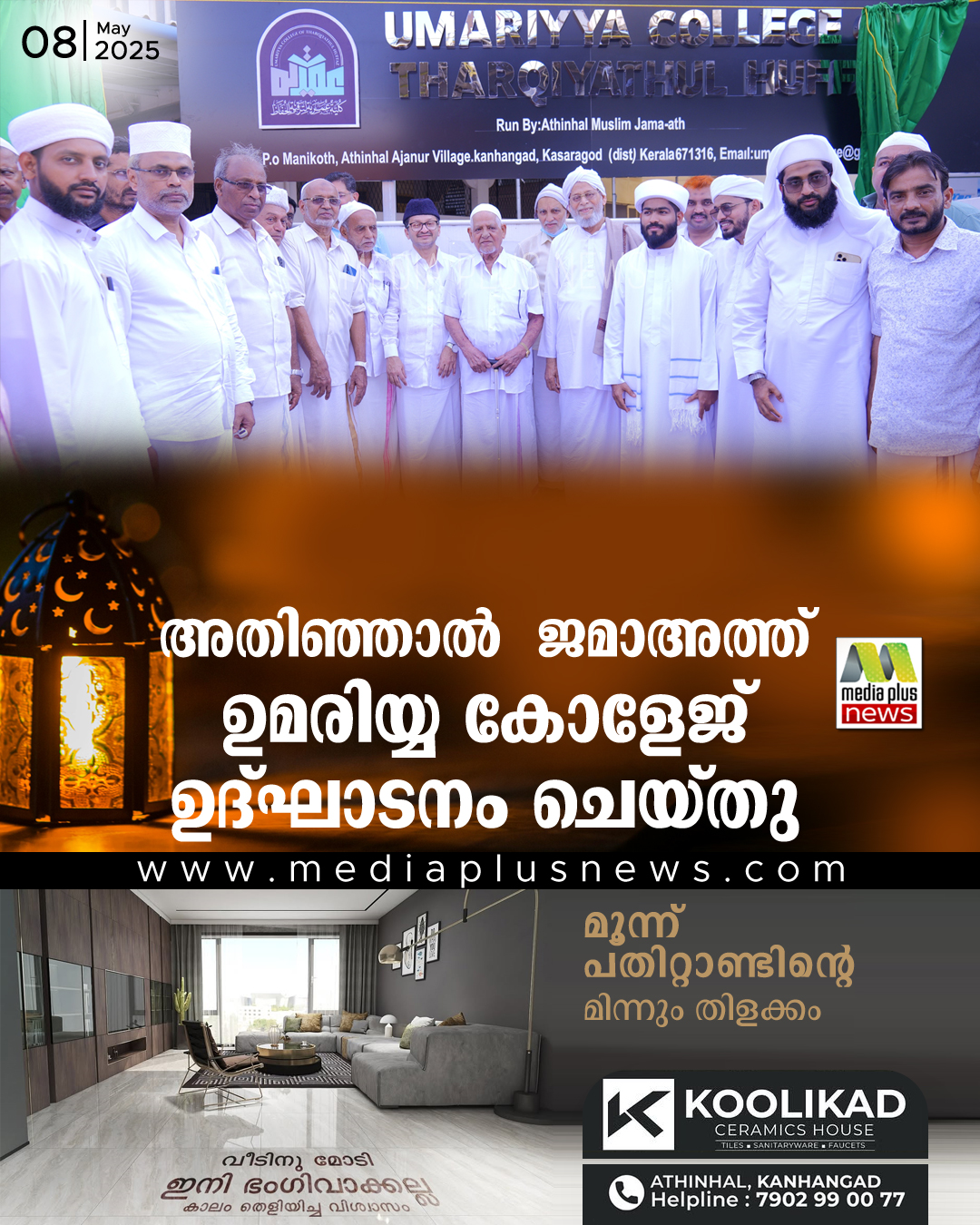 അജാനൂർ: അതിഞ്ഞാൽ മുസ്ലിം ജമാഅത്തിന്റെ കീഴിൽ ആരംഭിക്കുന്ന ഉമരിയ്യ കോളേജ് ഓഫ് തർക്കിയ്യതുൽ ഹുഫാള് ഉദ്ഘാടനവും പൊതുസമ്മേളനവും നടത്തി.